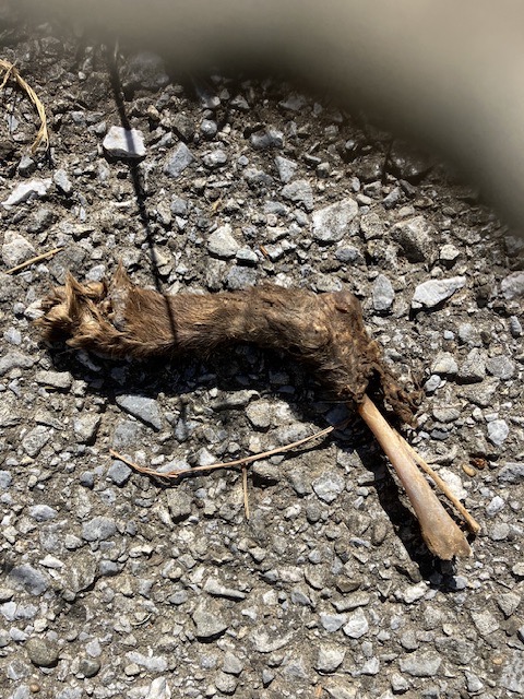 おそらくタヌキかハクビシンの骨と思われます。食べられた跡があるので、猫がタヌキかハクビシンの子供を襲って食べたのかもしれません。