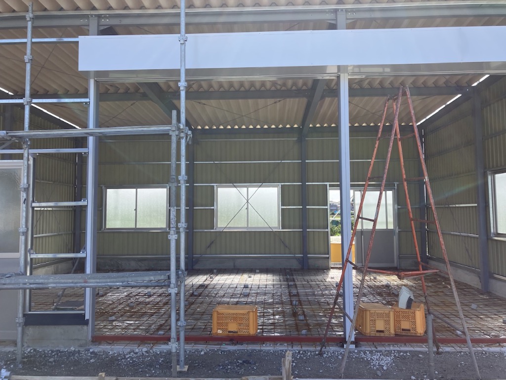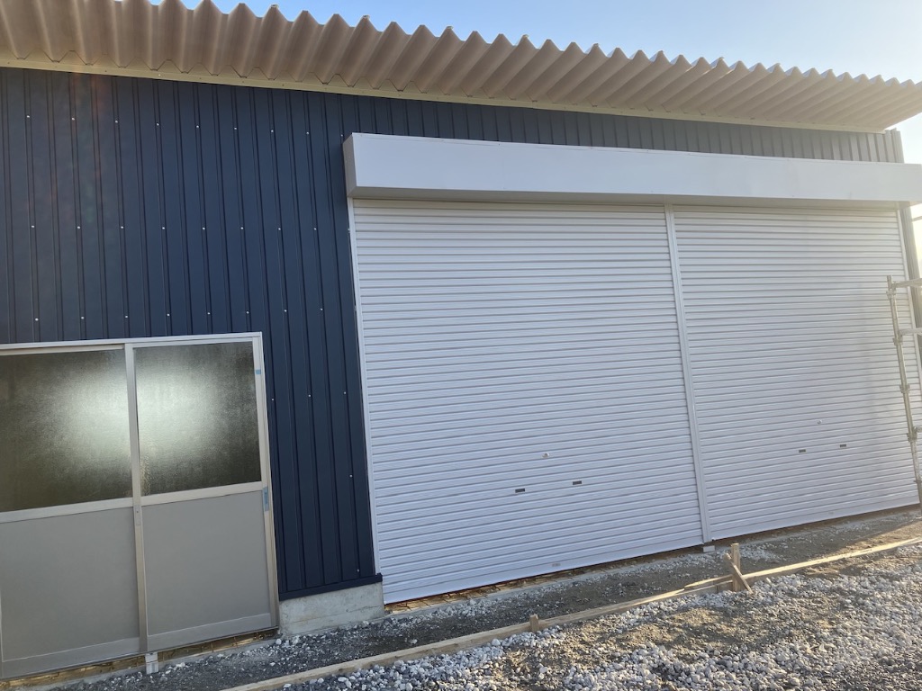 さて、農業用倉庫の外観がほぼ完成しました。あとは雨どいとか細かいところを付け加えて完成、と言ったところです。10月中に土間も完成し、完了検査を迎えるため、電気や水道(井戸)を通したりして完全に運用開始になるのは12月頃となります。