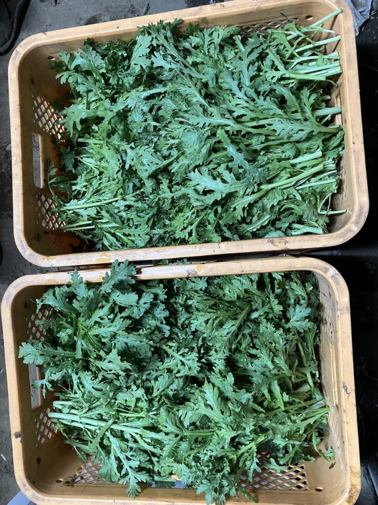春菊を出荷いたしました。150グラム入って170円です。よろしくお願いいたします😌