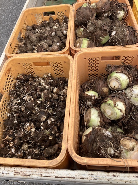 里芋は30キロ前後(親イモも30キロ前後)、サツマイモは30キロの収穫、ずっしりと取りました☺️