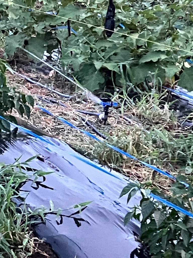 ということで、当園では夕方から朝にかけてスプリンクラー散水を行っております。今回でナスとピーマンの畝はまき終わりました。次はカボチャ・ズッキーニと空心菜の畝になります。オクラとモロヘイヤにたどり着くまでにはいつになることやら……😅