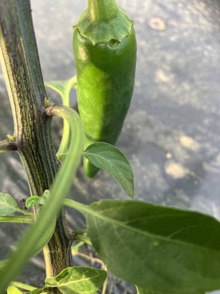 ハラペーニョなような辛そうな形をしていますが、食べてみるとほんのり甘く、食べやすいピーマンです。