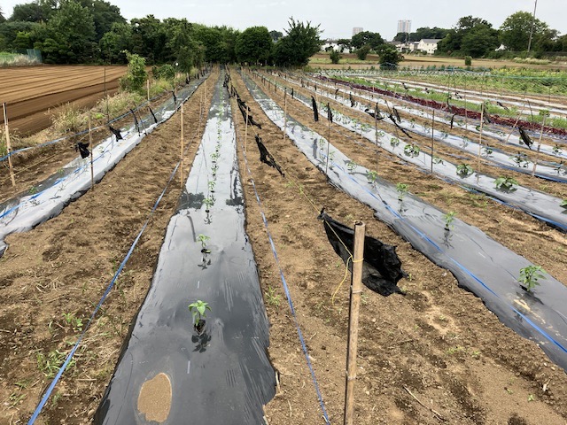 さて、農作業としては写真のとおり、ナスとピーマンのカラス(ハシボソガラス)対策を行いました。テグスを張って使い古しのマルチをちぎったものをテグスに結びます。去年はコレでカラスが来なくなりました。お手軽に対策できるので、被害に困っていましたらぜひお試しください😌