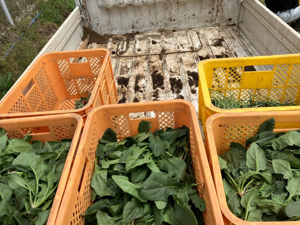 さて、出荷・納品ですが、道の駅とマルエツさんへの納品再開となりましたので、改めましてよろしくお願いいたします😌本日は春ほうれん草(2月まき)も納品しました。柔らかいのでオススメです☺️