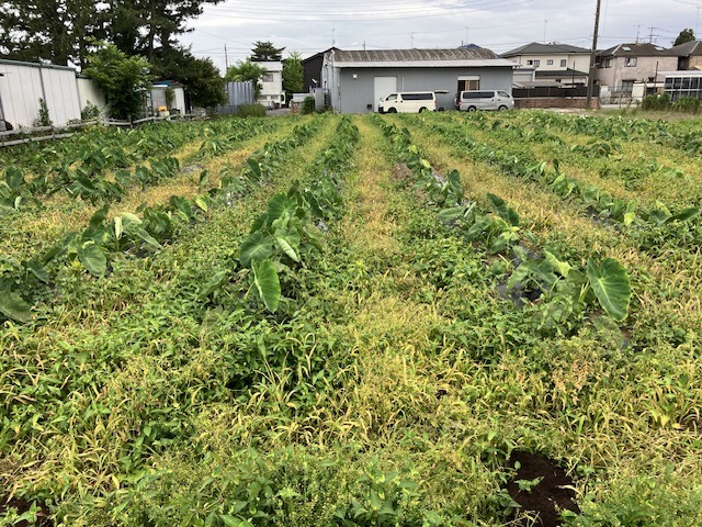 シソがありますね。赤シソは育苗ビニールハウスまわりに、青シソは50坪農園に雑草として生えてたものを移植。