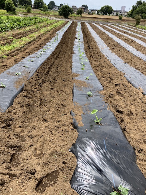 今日は午後から雨が降る予報のため、大急ぎで畝立て、カボチャとズッキーニなどを植えました。
