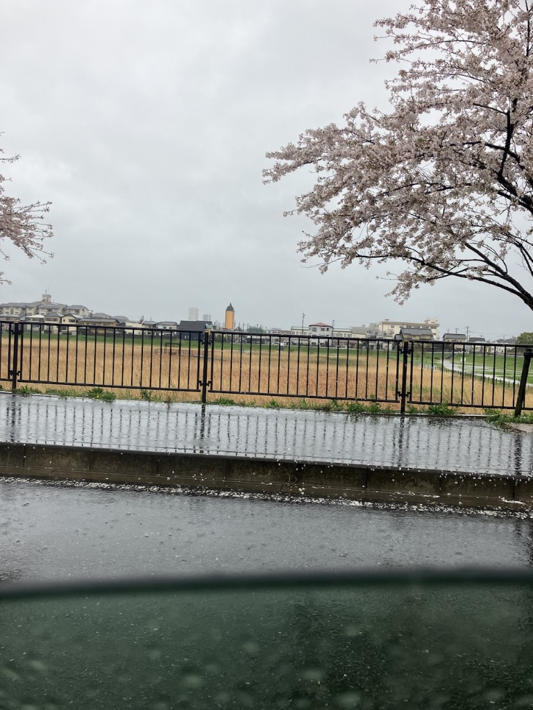花散らしの桜を横目に国分川の調節池は冠水してませんが、コレが長く続くと少し冠水するかもしれません😮