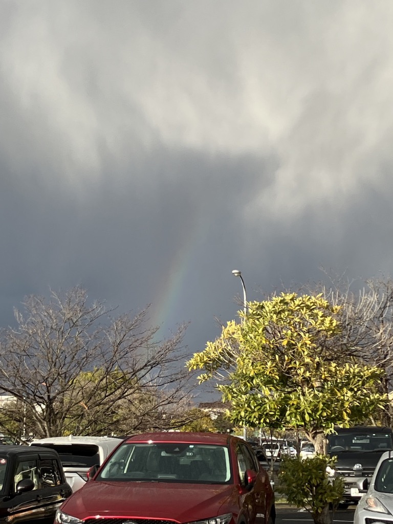 急な雨だったためか、ホーマックの駐車場で虹を見ました🌈