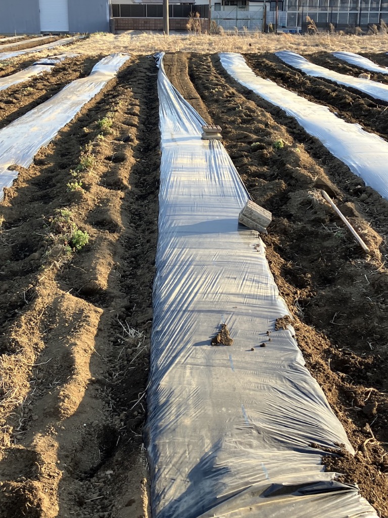 マルチが剥がれていたのはいずれも短い畝でした。剥がれたとき対応が大変な長い畝はほぼ無事で不幸中の幸いです。