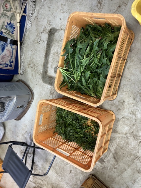 今日はのらぼうな定植を終わらせるため、植える場所にまだ残ってた今季最後のほうれん草収穫。春菊と合わせて久しぶりの出荷作業となりました。