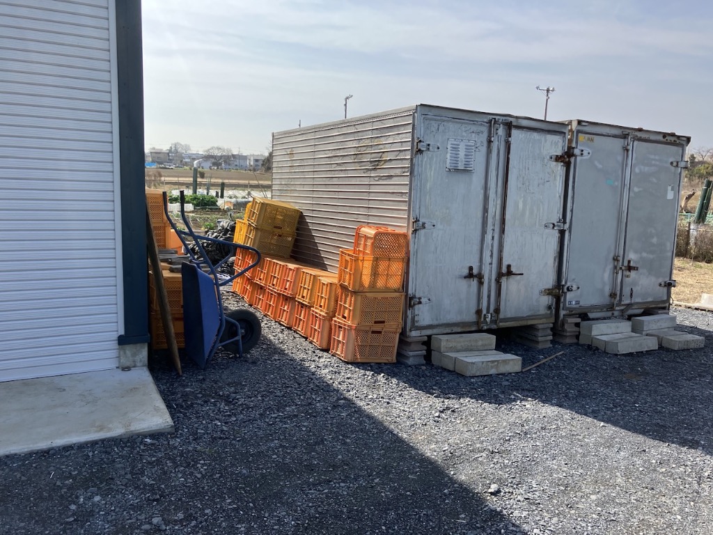 今日は倉庫を建設した鉄鋼屋さんが最後の仕上げとして、トイレとコンテナ倉庫をユニックで移動してくれました。