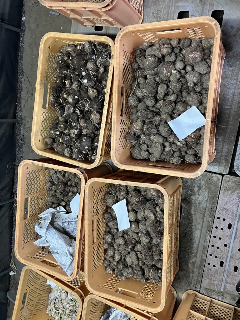 収穫した里芋は種芋として取っておき、余って状態の良いものは3月頃販売を行います。