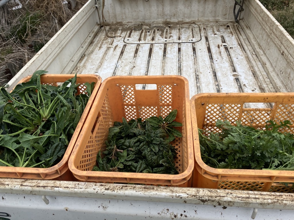 ほうれん草と春菊が少ししかありませんがとりあえず収穫しました。