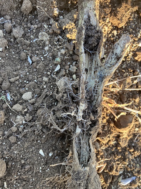 木のように硬いのですが、土の中にいたアカザの茎はボロボロになり、手でほぐれるように。