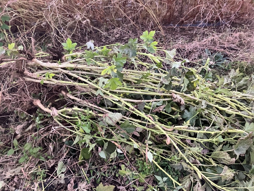・セルロース比率が高く、分解が難しいもの(当園の場合はナス残渣、オクラ残渣、モロヘイヤ残渣など)