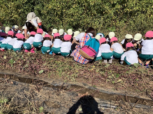 今日は4歳児、明日は5歳児、金曜日は6歳児がイモ掘りに来ます。