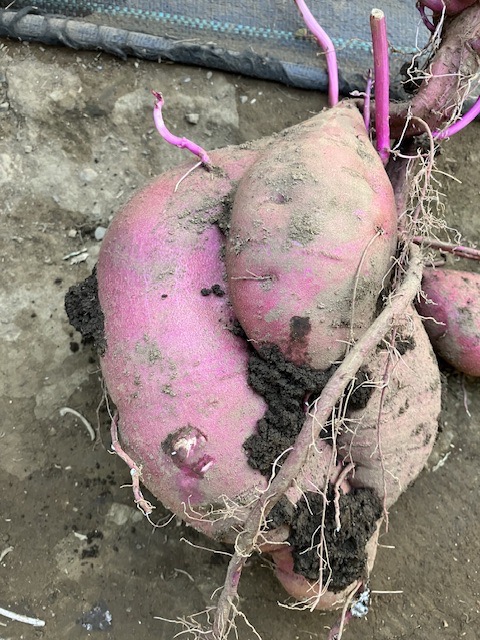 里芋は30キロ前後(親イモも30キロ前後)、サツマイモは30キロの収穫、ずっしりと取りました☺️