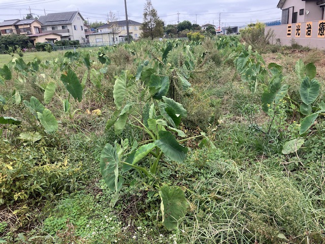 里芋の畑です。コレとこの前投稿した里芋を乾かしている写真を先生に送ろうと思います。
