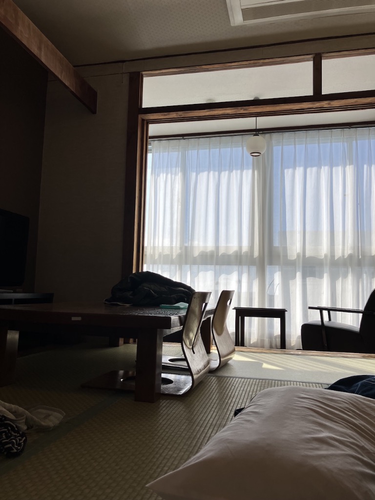 それにいて、なかなか年季の入ったホテルなので、夜中は風の音で眠れないほど。広縁との境にふすまがあったので、閉じたら少しは良くなりました。