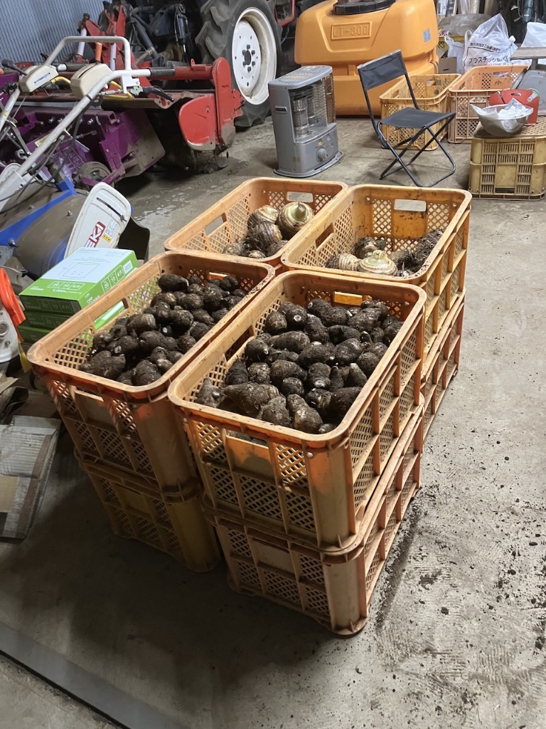里芋掘りを一日していました。親イモ含めて200キロほど。