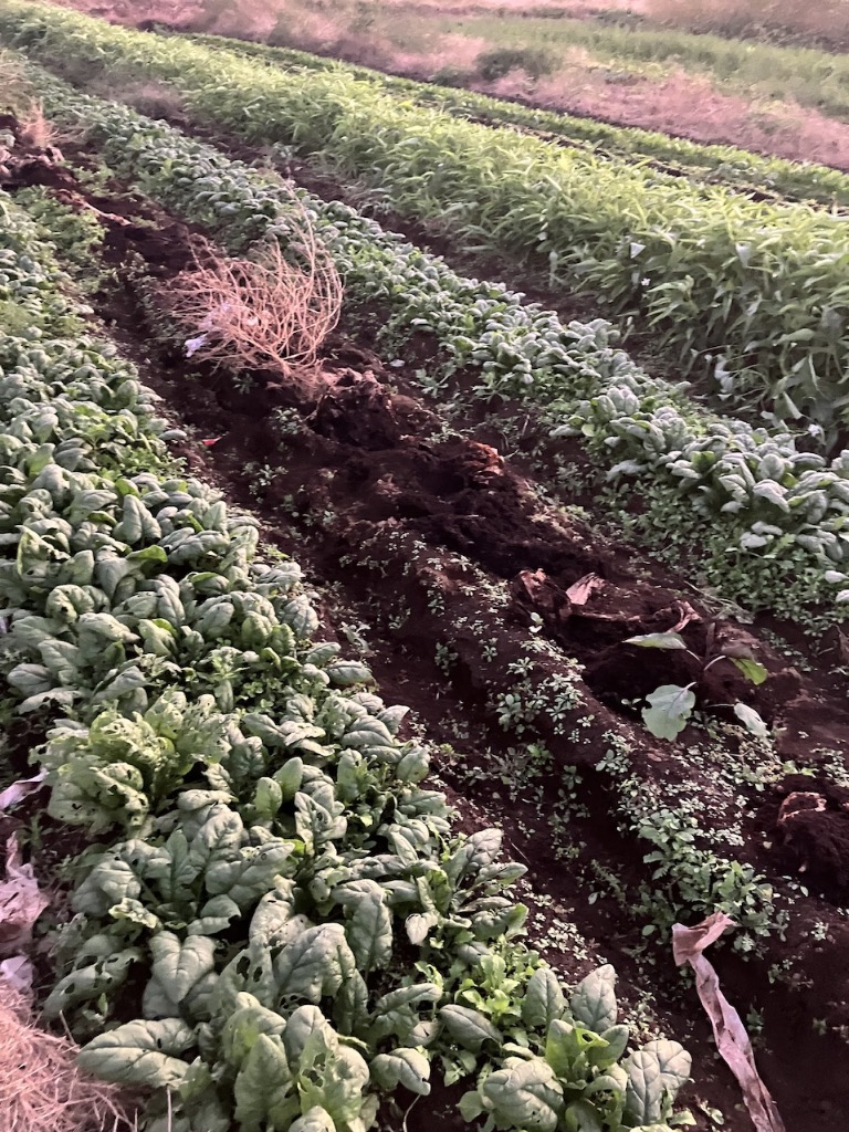 大根とちぢみほうれん草の畑はだいぶ進みました。