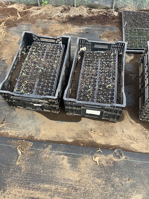 盛り土の上に苗床を乗せると地温が伝わりにくくなり、発芽率が良くなるそうで、効果てきめん❗