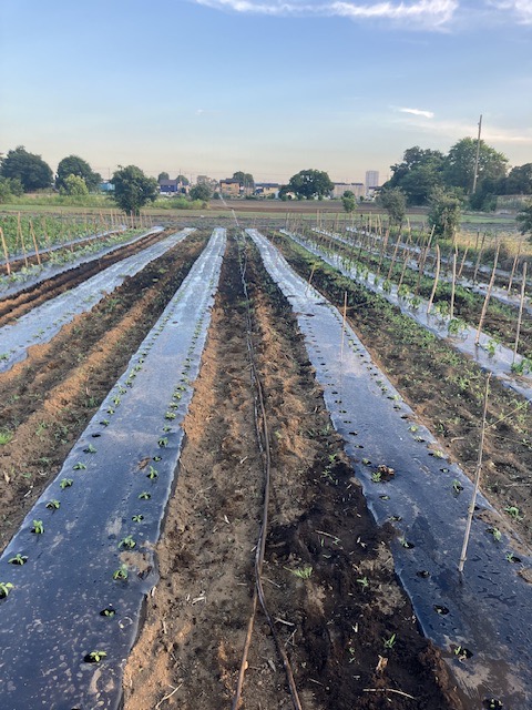 なぜ、ナスの間に植えたかというと、シソの香りがナスの害虫を寄せ付けなかったり、ナスの生育にプラスとして働くためです。これを「コンパニオンプランツ」と呼びますが、混植なので農協に提出する作物管理記録簿の扱いが面倒くさくなるため、あらかじめ農薬を使わない予定の野菜に限り行っております。