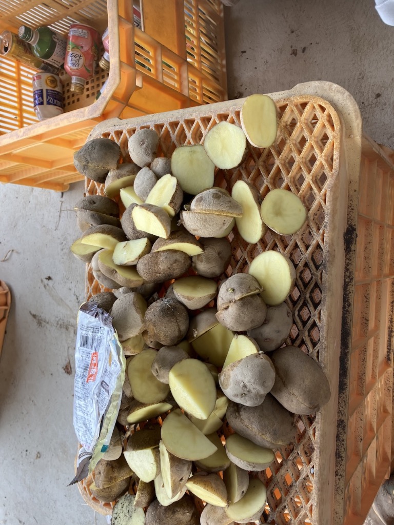 今日はジャガイモの植え付けを行いました。