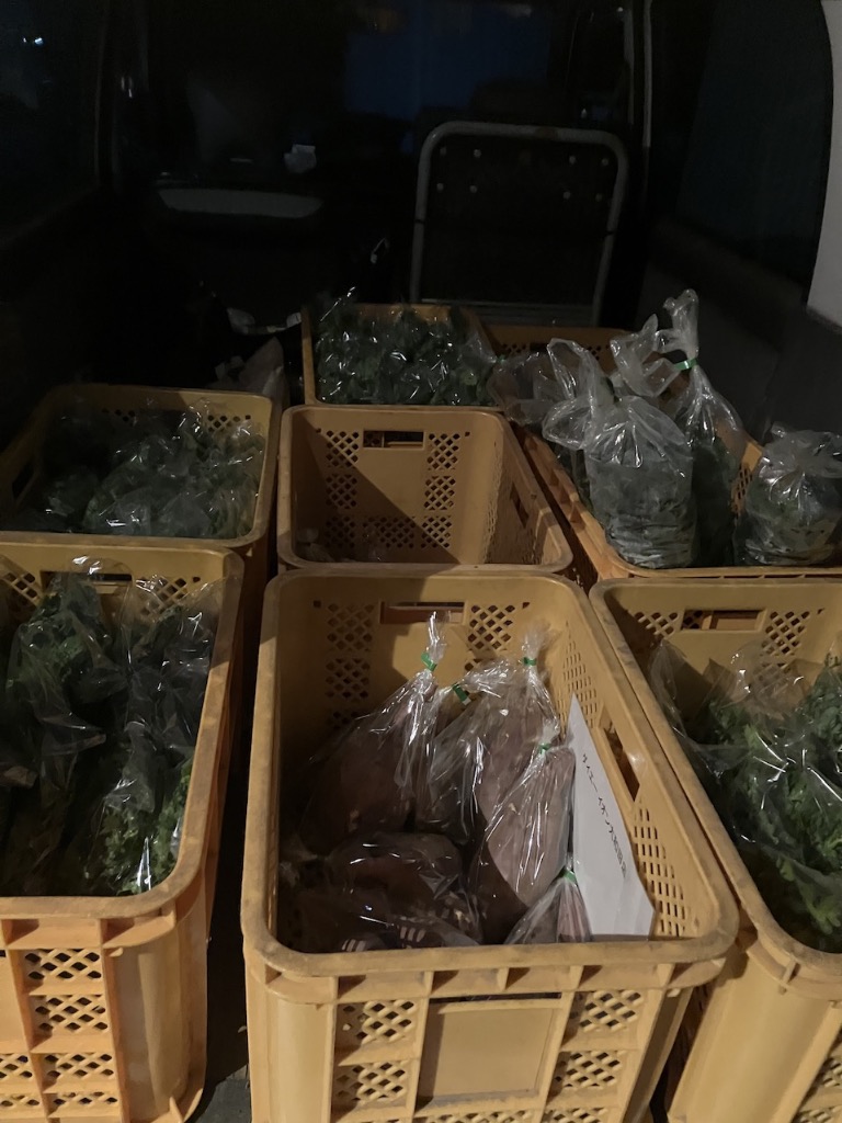 春菊とサツマイモの出荷